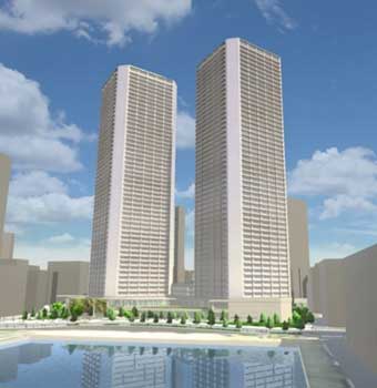 中央区豊海町に2棟のタワーマンションを建設する第一種市街地再開発事業の「権利変換計画」が認可された。工事前の手続き的なものは一段落。この後、既存建物の解体から工事着手という流れになる。竣工は2027年度(2021/05/29)。