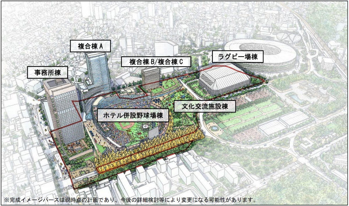 神宮外苑地区のスポーツ施設の建て替えを進める「神宮外苑地区第1種市街地再開発事業が2023年2月17日付で東京都により認可されて事業着手段階に入った。敷地は港区と新宿区にまたがる。全体竣工は2035年度ということで、先の長い話だ(2023/02/16)。