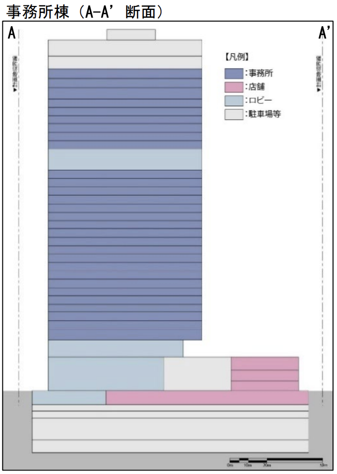 地下2階、地上40階 高さ約185m