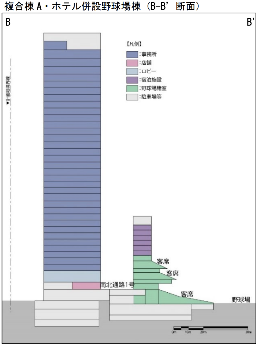 ホテル併設野球場棟