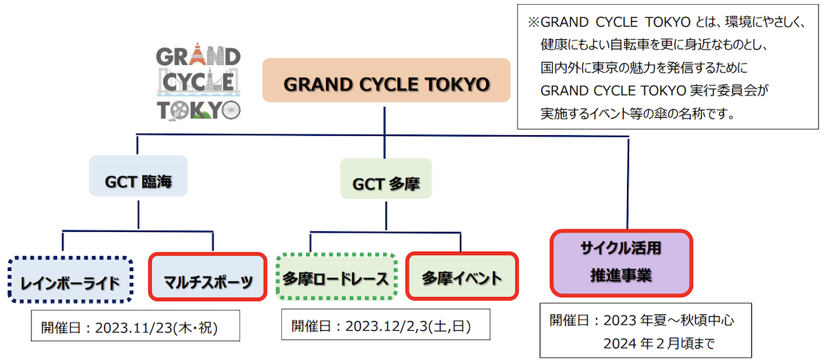東京都は2023年度に臨海地域でマルチスポーツイベント(11月)、多摩地域でサイクルイベント(12月)、サイクル活用推進事業(夏から秋)を計画している。内容が一部見えてきたのでまとめておく(2023/04/13)。