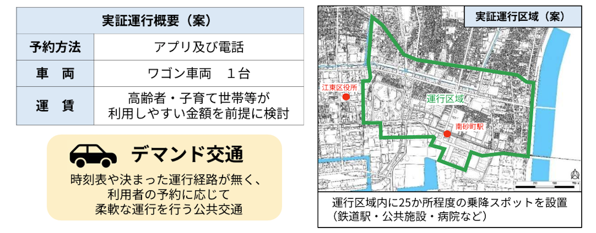2027年度の実証運行に向け、都営路線バス網を補完する江東区初の公共交通運行に向けたシステム構築